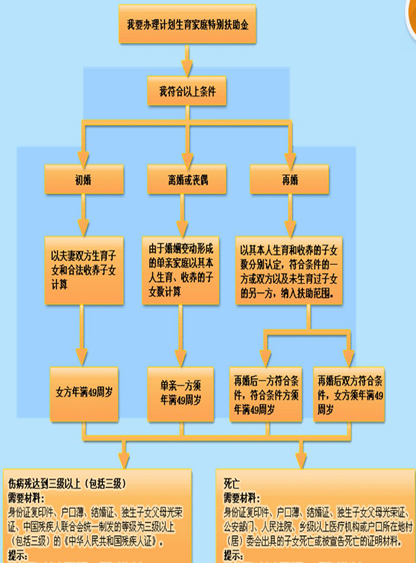 1、本人居民身份证、户口簿、一寸免冠近照四张,以及办理退休手续的原工作单位出具的婚姻生育状况证明(原无工作单位或原工作单位已不存在的由现居住地居、村民委员会出具证明)。 2、户口迁出本省但仍在本省领取退休金(养老金)的原本省城镇居民,还应提供退休证和退休金(养老金)发放部门出具的退休金(养老金)发放证明,以及现户籍地县级卫生计生主管部门出具的未在当地享受同类奖励与扶助的证明。 3、年满49周岁后由外省(区、市)迁入的人员还应提供其原工作单位和原户籍地县级卫生计生主管部门出具婚姻生育状况证明、其在原户籍地未享受同类型奖励与扶助的证明。 4、离婚的还应提供离婚证、离婚协议书或判决书。 |